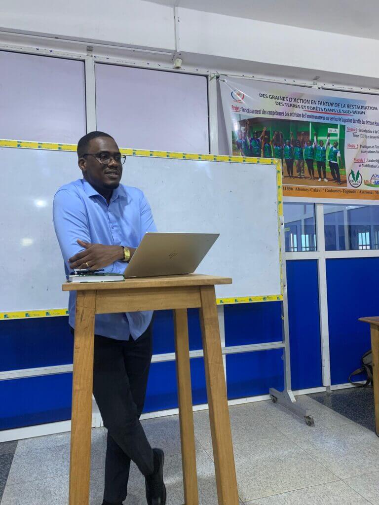 À l’ouverture des travaux, CEEVAL Bénin a animé le tout premier module de formation, intitulé « Introduction à la gestion durable des terres et des écosystèmes forestiers ». Cette session inaugurale, conduite par M. Désiré AGBESSI, fondateur et directeur général de l’entreprise, a permis de poser les jalons d’une compréhension partagée des enjeux environnementaux actuels.